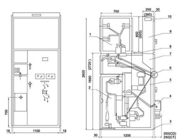 According to the layout of the cabinet, the relay room is installed with a relay, the door can be equipped with signal relay, indicator instrument, signal light, transfer switch installation and operation chamber, the rear is the busbar room, the lower part is the cable room, the user can easily wire. The front is the circuit breaker room, which facilitates the maintenance of the switchgear. The internal mechanism of the cabinet is shown in Figure 1, Figure 2 and the product manual.