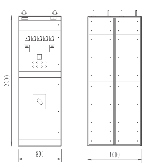 4 . 1 The total height of the product is 2200mm, the top is the busbar, the middle part is the installation height of the electrical components, the highest is 1800mm, and the bottom part of the fixing scheme should be subtracted by 200mm, the maximum is 1600mm (except for the scheme given 1800mm).