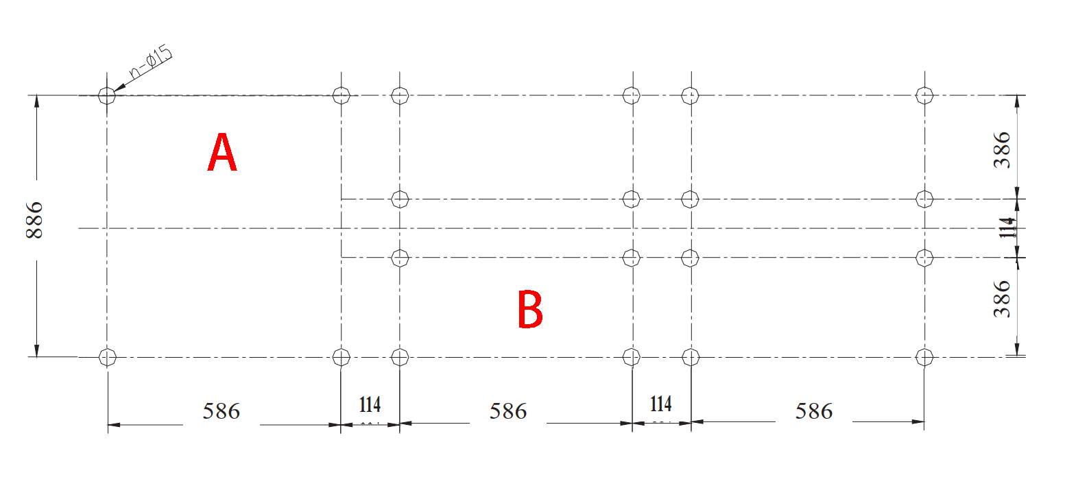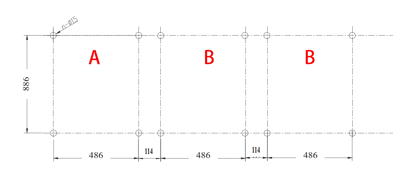 Fig.4 Installation size A: inlet cabinet B: feeder cabinet